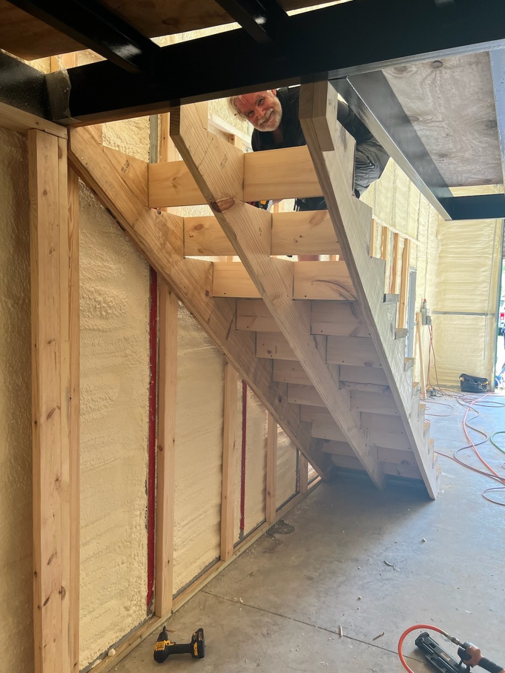 By the end of the day we had a fully framed out area under the loft and a very handsome set of stairs.