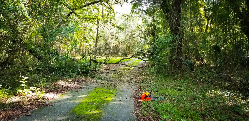 At one point walking between the buildings, I heard something loud in the distance. At first I thought it could be a gunshot, but it didn’t sound quite right. Without giving it much thought, I went about my business. Later that afternoon, as we were leaving the farm for the day, we found a large tree had fallen, blocking the driveway. Our property is full of old growth trees, so this is not altogether an unusual occurrence. The timing of this event though, was another matter. We were in town on a last minute notice, and had we not been there this would have been a major complication for my mother to deal with. I see the deliberate timing that GOD places on our lives that causes us to be in a position to do the greatest good. My wife and I understand with GOD in our lives there are no coincidences and for that we are extremely Grateful!